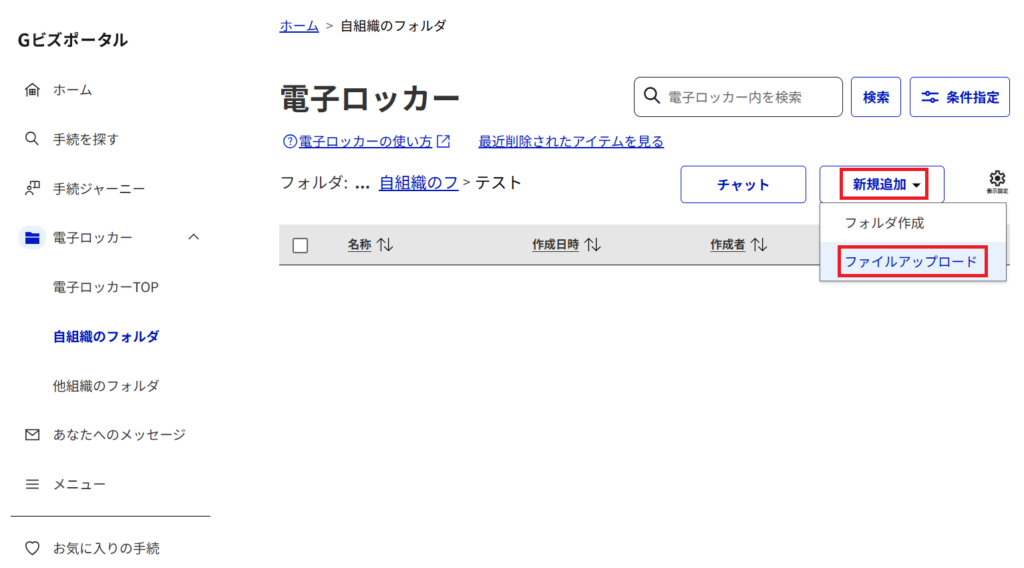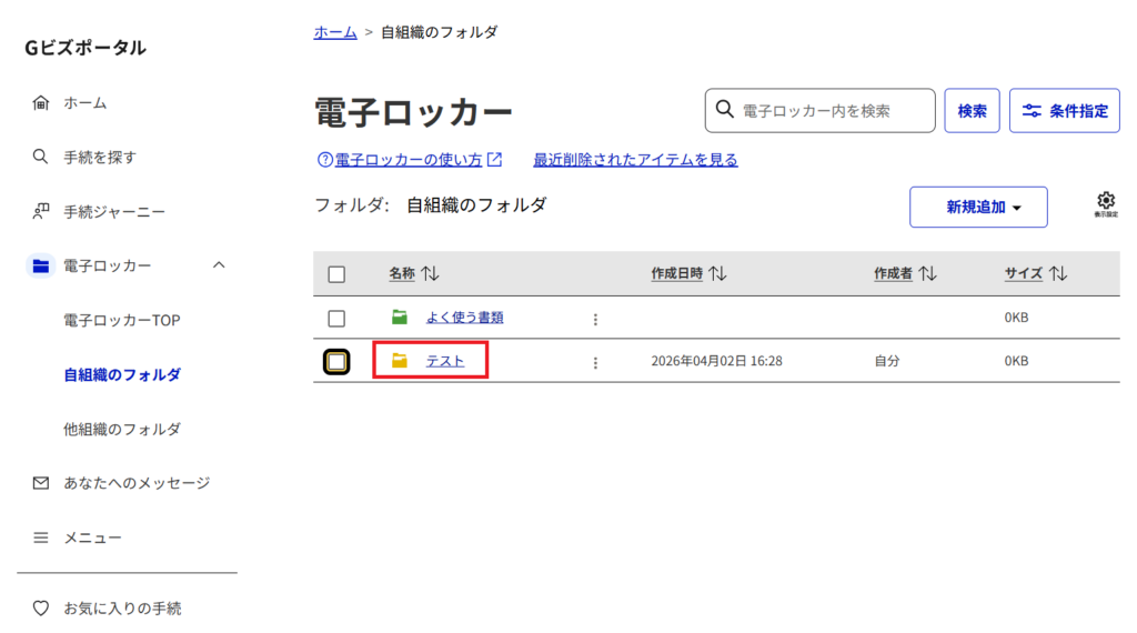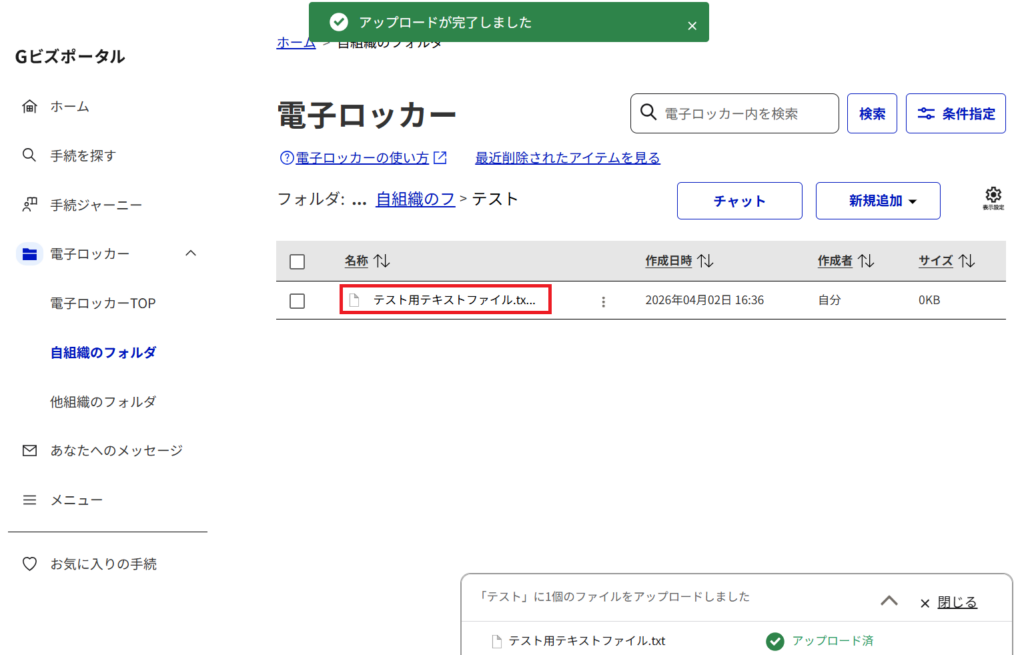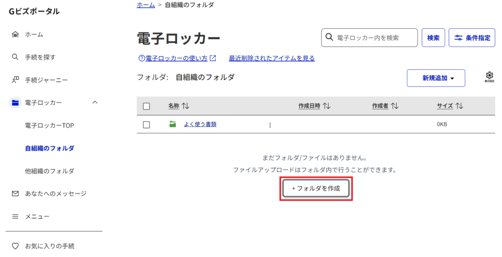 電子ロッカーでは、案件ごとのフォルダを作成したり、ファイルをアップロードすることができます。