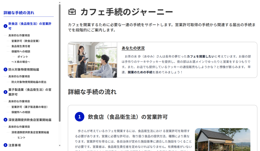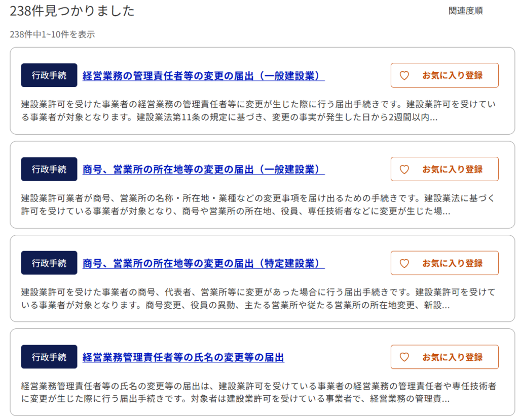 業種や目的に応じて必要な手続を素早く把握でき、情報収集の手間が大幅に軽減されます。