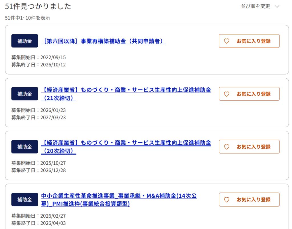 複数の省庁にまたがる行政手続や補助金情報を、キーワード検索で一括して探せるようになりました。
