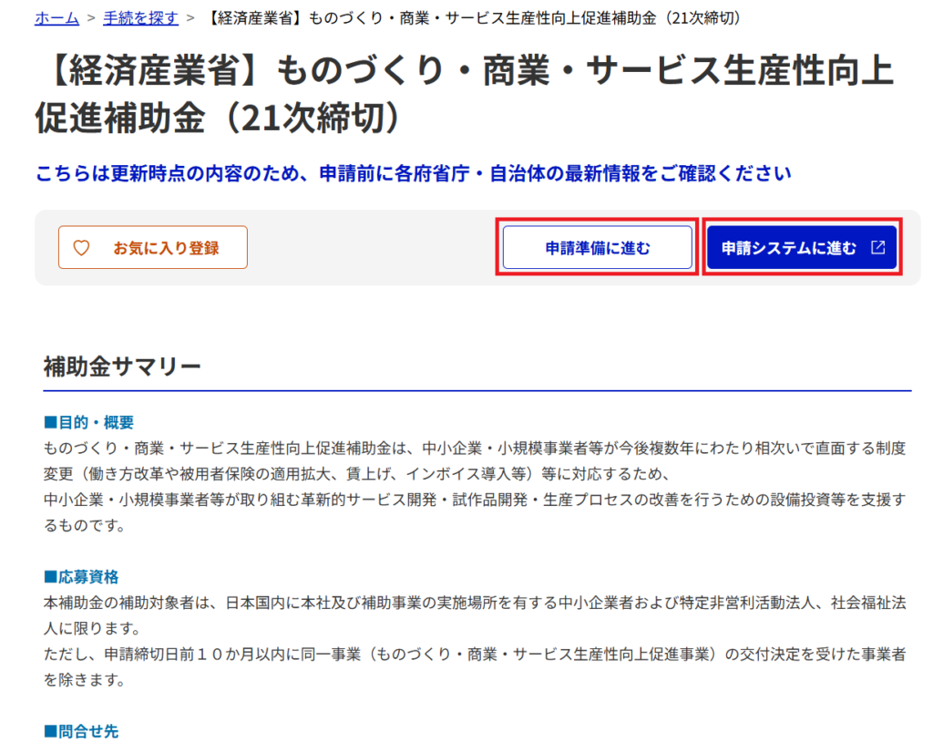 ⑤各補助金の詳細情報は、次の様に表示されます。