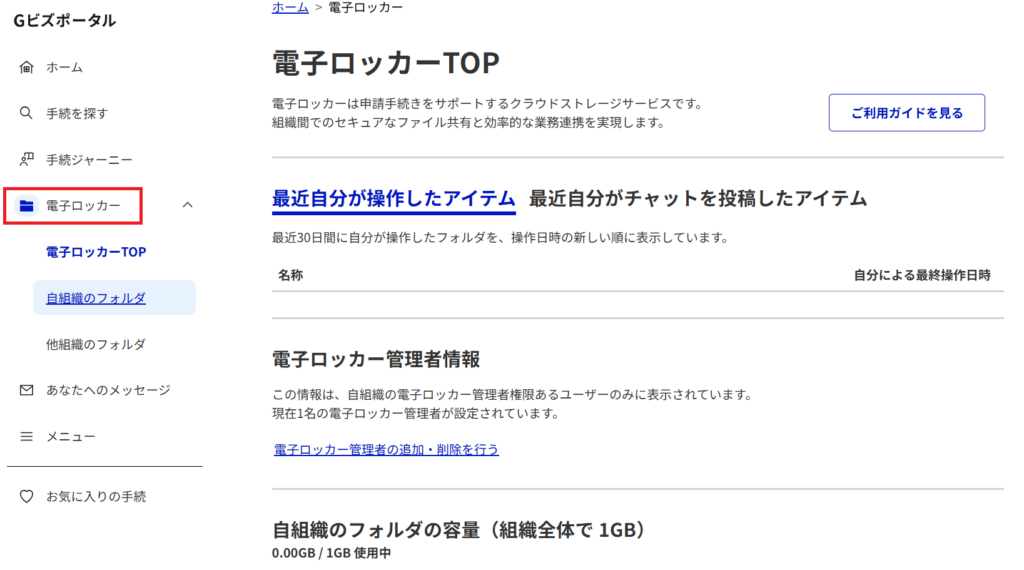 「申請準備に進む」をクリックすると、電子ロッカーに移動します。