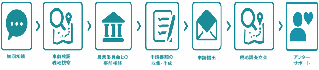 農地法の申請は、単なる書類提出ではなく、事前準備・行政との調整・現地対応・報告までを含む一連のプロセスです。