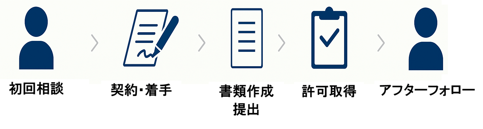 さらに、許可取得後も事業の成長や変化に合わせて必要となる手続きまで継続的にサポートします。